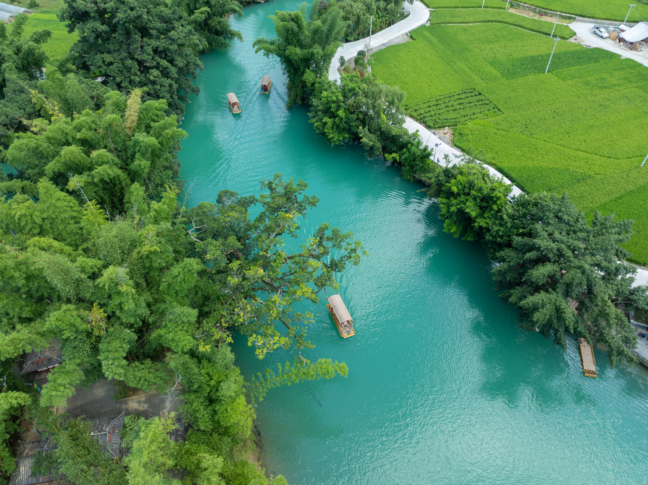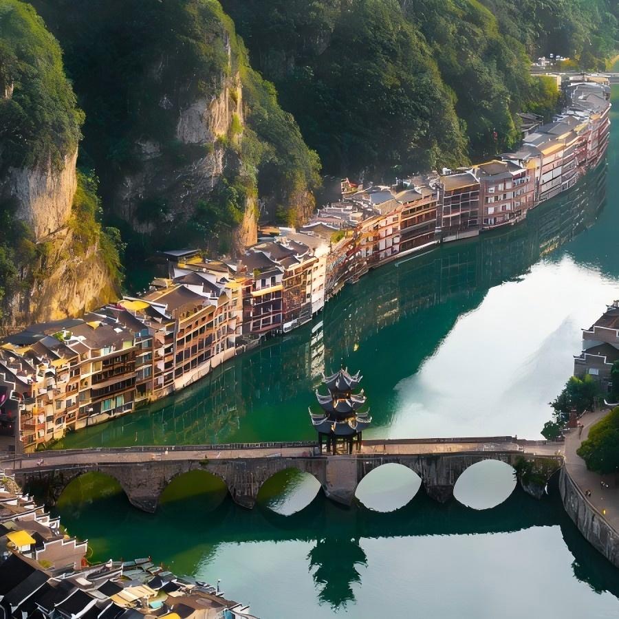 맑은 강물이 태극 모양의 고성을 감싸고, 오가는 배의 노 젓는 소리가 옛 돌길 위에 느린 시간의 여운을 남깁니다.