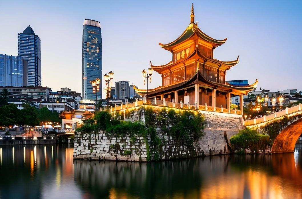 첫째 날 구이양(贵阳)에 도착하여 다채 구이저우성(多彩贵州城)으로 이동합니다. ‘첸산바이웨이 미식 거리(千山百味小吃荟)’에서 현지 간식을 맛보고, ‘첸산푸광 예술관(千山扶光艺术馆)’의 문화 전시를 관람하세요. 저녁에는 자슈러우(甲秀楼)로 자리를 옮겨, 난밍허(南明河)에 비친 명대 고각의 화려한 야경을 감상하며 백 년의 문맥과 도시의 밤이 어우러진 정취를 느껴보세요. 구이양(贵阳)의 등불을 벗 삼아 숙박합니다.