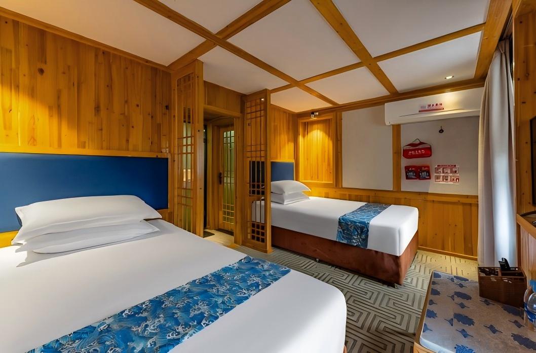 넷째 날, 아침 일찍 리보 샤오치쿵(荔波小七孔)로 향하여, 맑고 푸른 물과 치커우 고대 다리 사이를 거닐며, 수상 숲 트레킹이나 원앙호수에서 보트 타기의 즐거움을 경험하실 수 있습니다. 이후 시장 첸후 묘족 마을(西江千户苗寨)로 출발하여, 도착 후 층층이 쌓인 고상식 가옥과 막 켜진 조명이 아름다운 먀오족 마을의 야경을 감상하고, 민족 가무 공연도 관람하실 수 있습니다. 시장에서 숙박하며, 짙은 묘족 풍경에 흠뻑 빠져보십시오.
