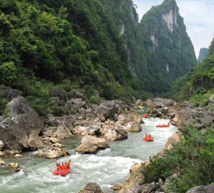 셋째 날 오전에는 리보 수이춘허(荔波水春河)로 이동하여 13km에 달하는 협곡 래프팅을 체험하세요. 래프팅은 총 약 2~3시간 동안 카르스트 협곡 사이를 누비며, 10여 개의 급류와 잔잔한 구간이 번갈아 나타나는 동안 양안의 원시림과 부이족 마을의 아름다운 풍경을 감상하실 수 있습니다. 래프팅이 끝난 후 차를 타고 구이양으로 돌아가면서 이 산악 여행을 마무리합니다.
