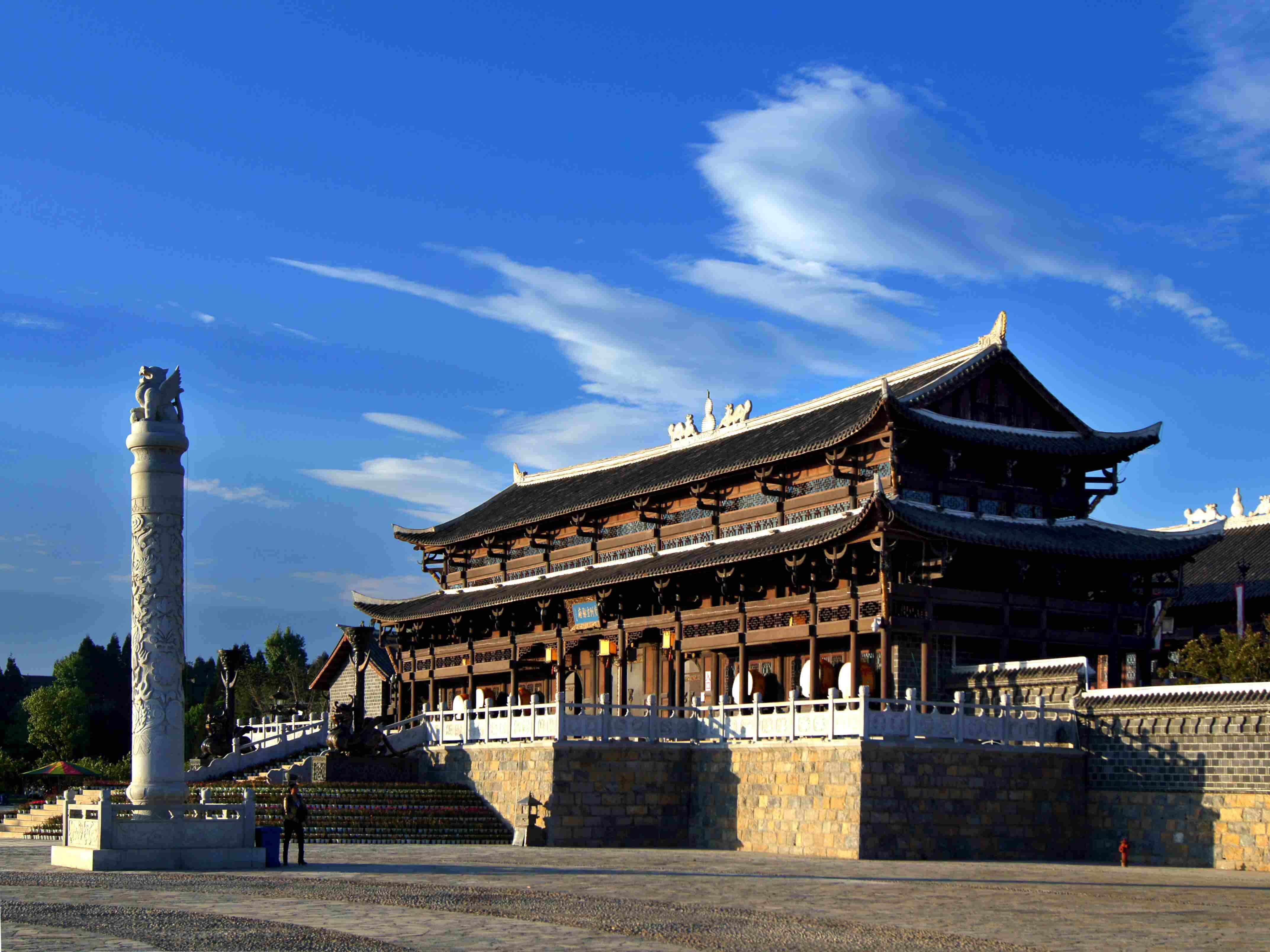 명나라 시대 이족 여성 정치가 사향부인이 이곳에서 통치하며 용장구역(龍場九驛)을 개척하고 한족과 이족의 교류를 촉진했다. 고성은 2008년 이후 역사적 규제를 따라 재건되어 현재 국가 4A급 관광지로 지정되었으며, 사향부인묘, 사향부인박물관 등 국가급 중요 문화재 보호 단위를 완벽히 보존하고 있어 “사향부인의 고향, 고대 이족의 성지”로 불린다.