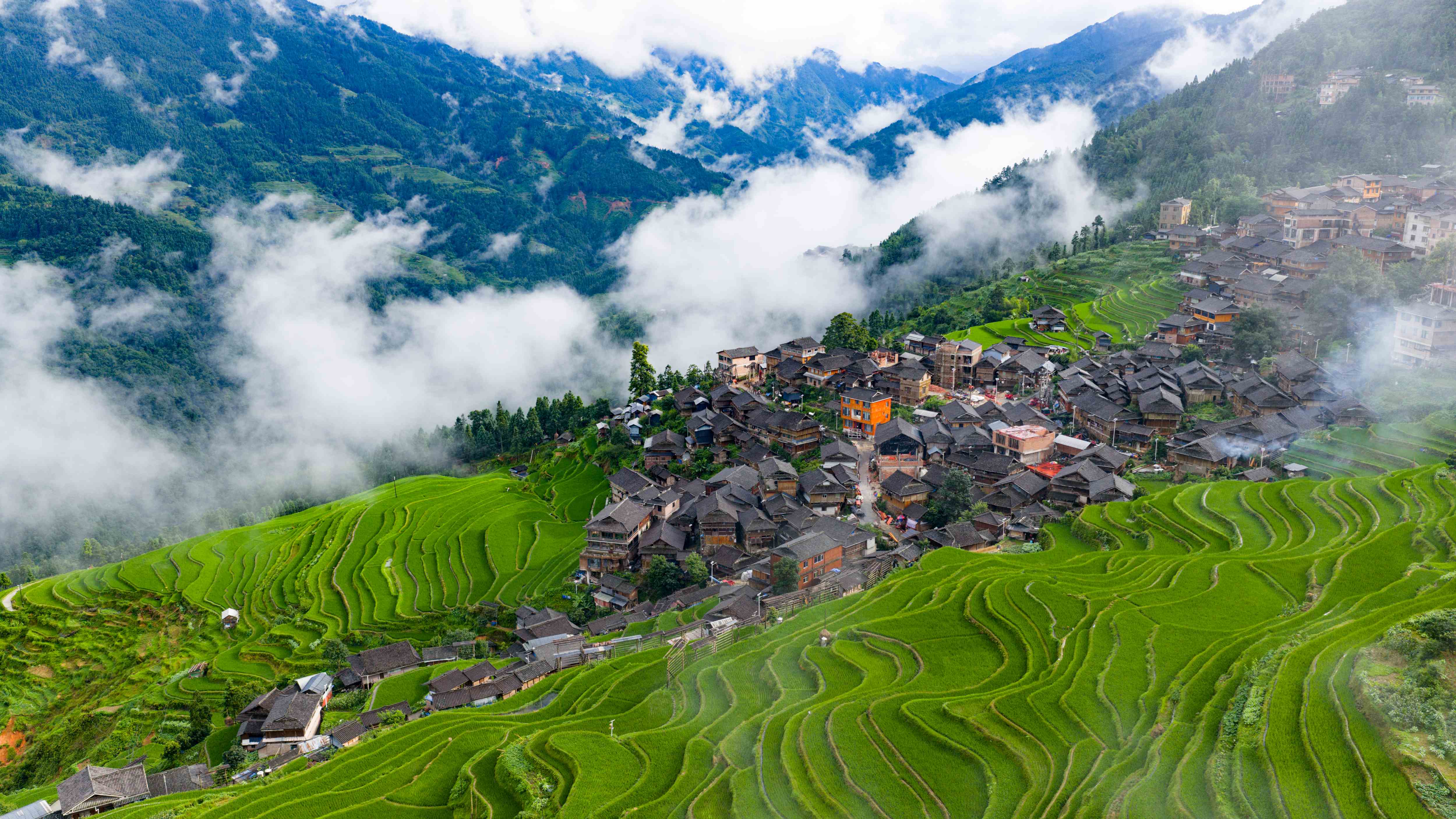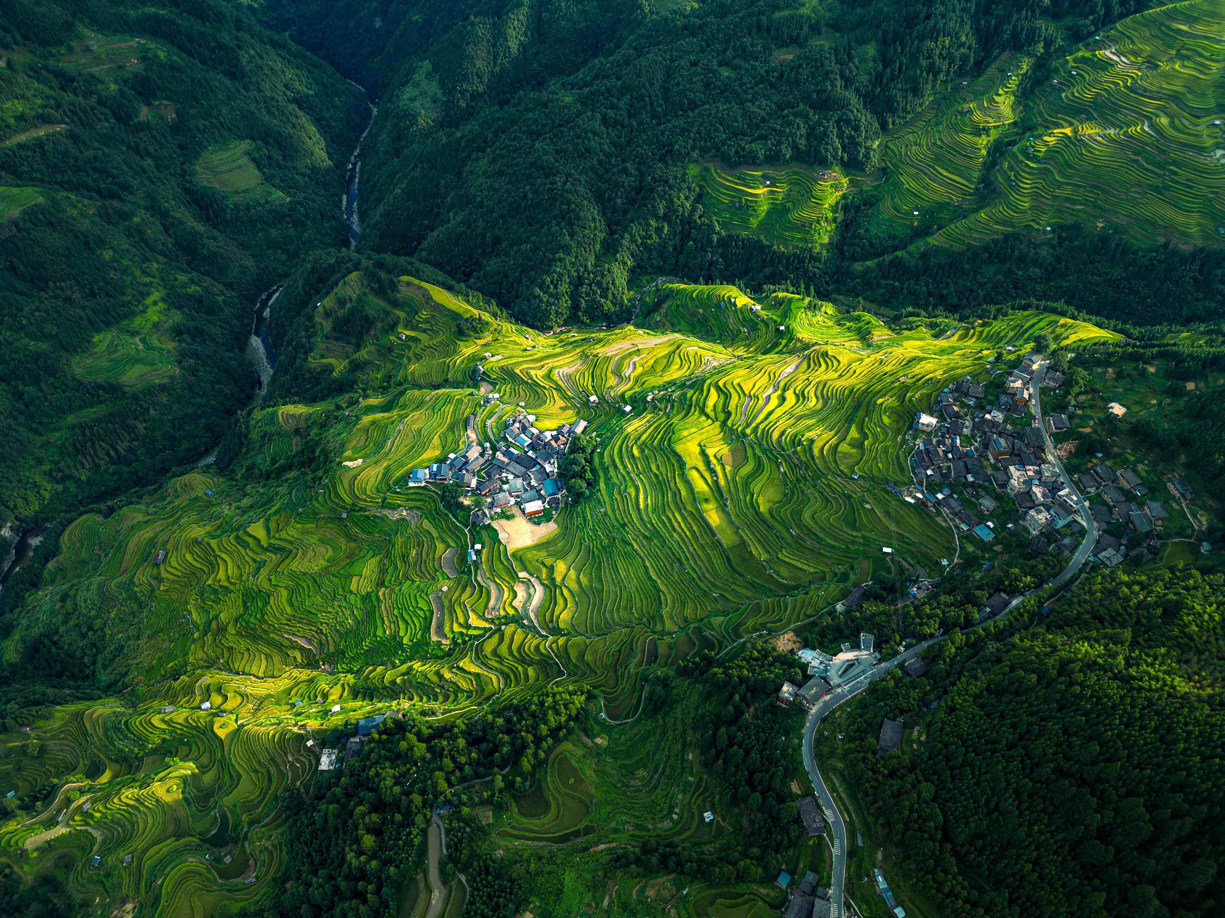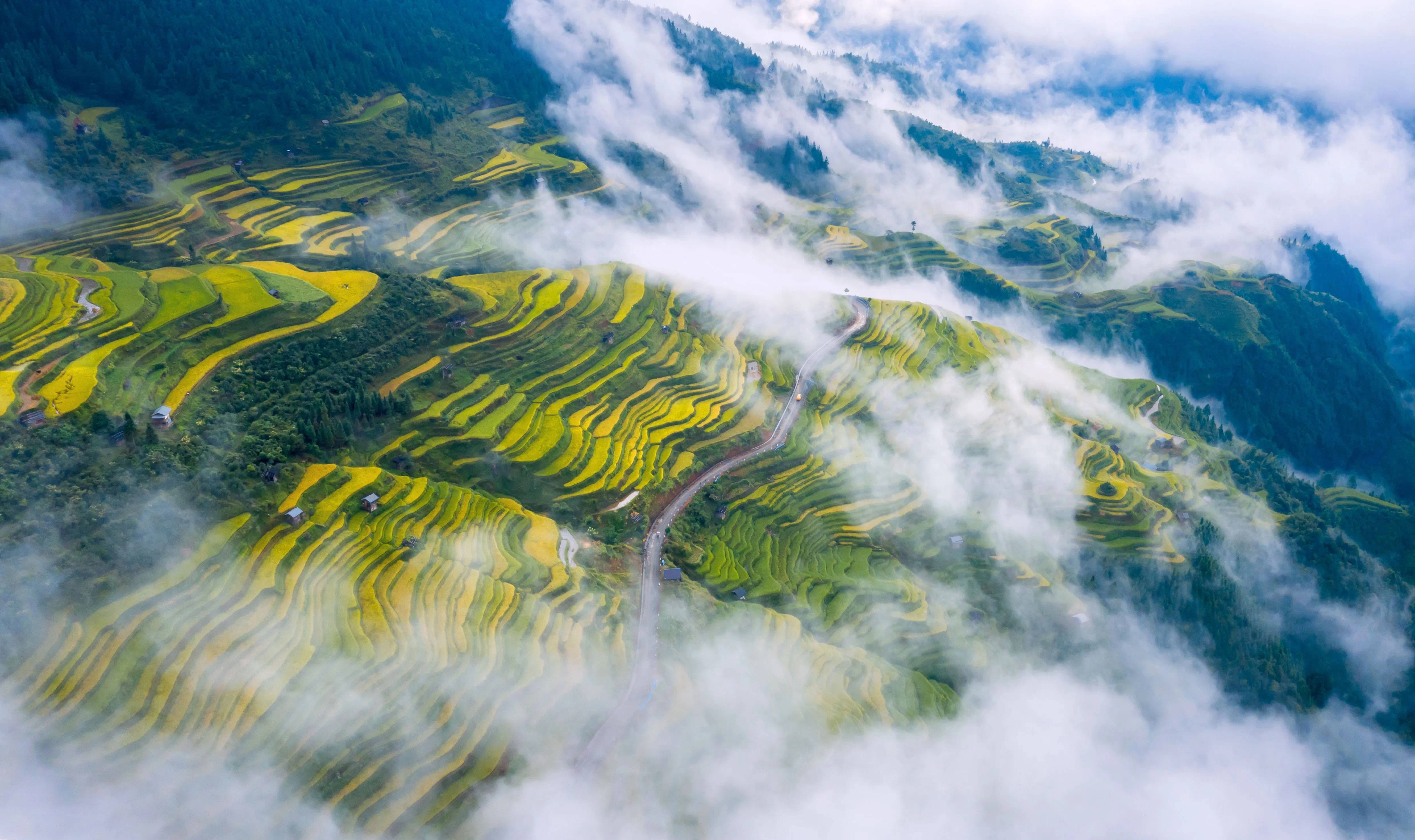 자방 계단식 논은 중국의 대표적인 계단식 논 중 하나로, 월량산(月亮山)에 깊숙이 숨겨진 천년의 농경 비경입니다. 계단식 논은 산세와 지형에 따라 조성되된, 먀오족이 대대로 이어온 걸작입니다. 원시적인 아름다움을 간직하면서도 생동감이 넘치며, 해발 300m의 계곡에서 1400m의 산 정상까지 켜켜이 쌓여 있습니다. 논의 면적은 대부분 1무(亩, 약 667㎡)를 넘지 않지만, 유려한 선이 어우러져 웅장한 규모를 자랑합니다. 계단식 논은 사계절 내내 그림 같은 풍경을 만들어냅니다. 봄에는 논에 댄 거울 같은 물에 비친 벚꽃을 감상하고, 여름에는 벼와 물고기, 오리가 한 폭의 그림을 만들며 가을에는 황금빛 물결이 펼쳐지고, 겨울에는 눈 덮인 하늘 계단이 장관을 이룹니다. 논 사이에는 먀오족 특유의 조각루(吊脚楼)가 흩어져 있어, 인간과 자연이 조화롭게 공존하는 아름다운 경관을 완성합니다.