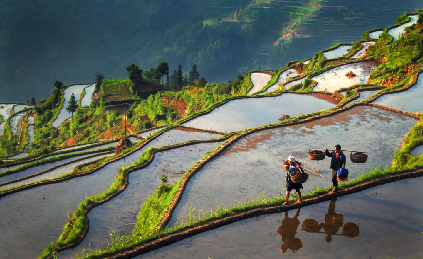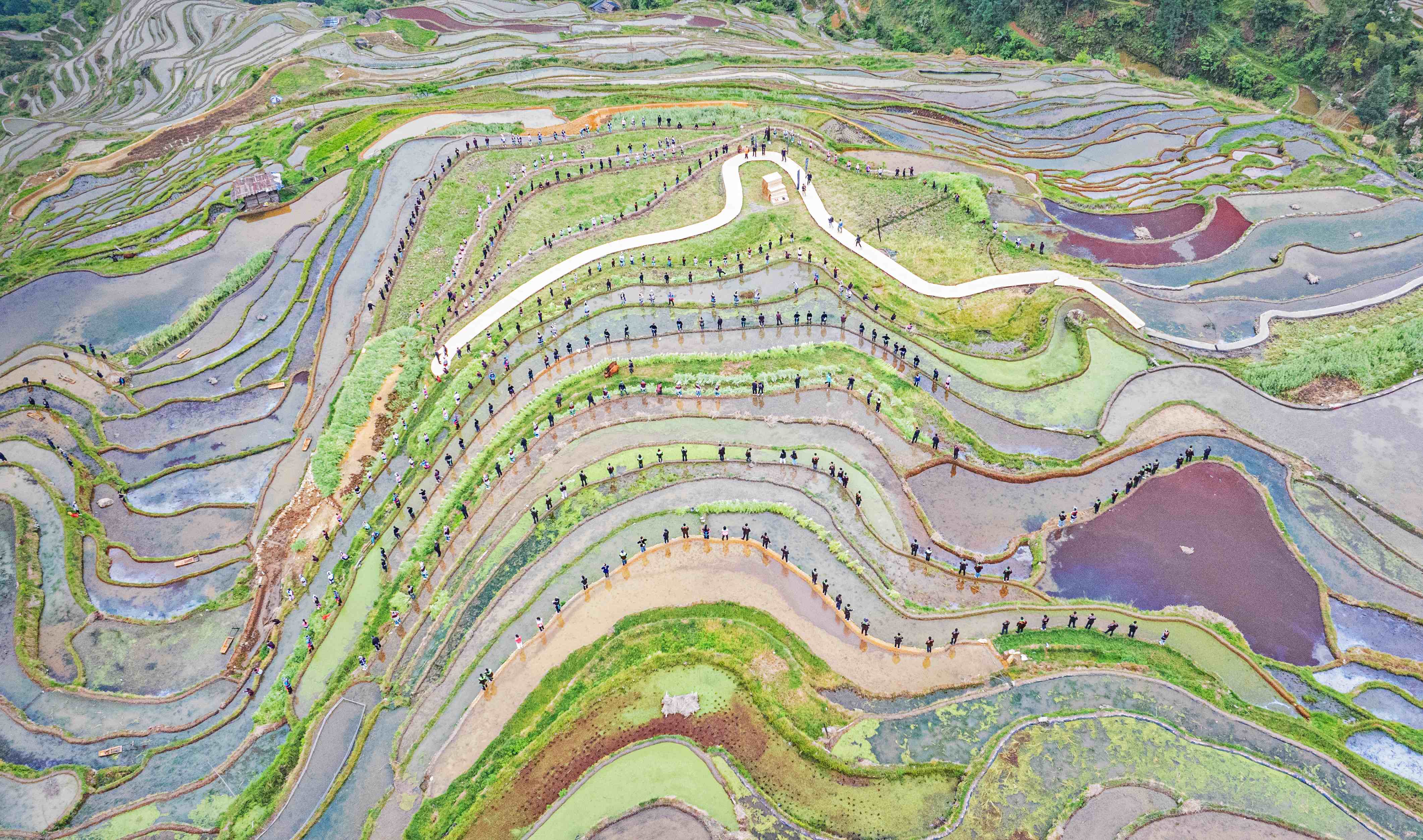 계단식 논에서 산야의 초대에 응답하고 층층이 펼쳐친 대지의 화폭 앞에서 시간과 마주합니다 옛 농경의 지혜가 현대적 상상력을 밝히고