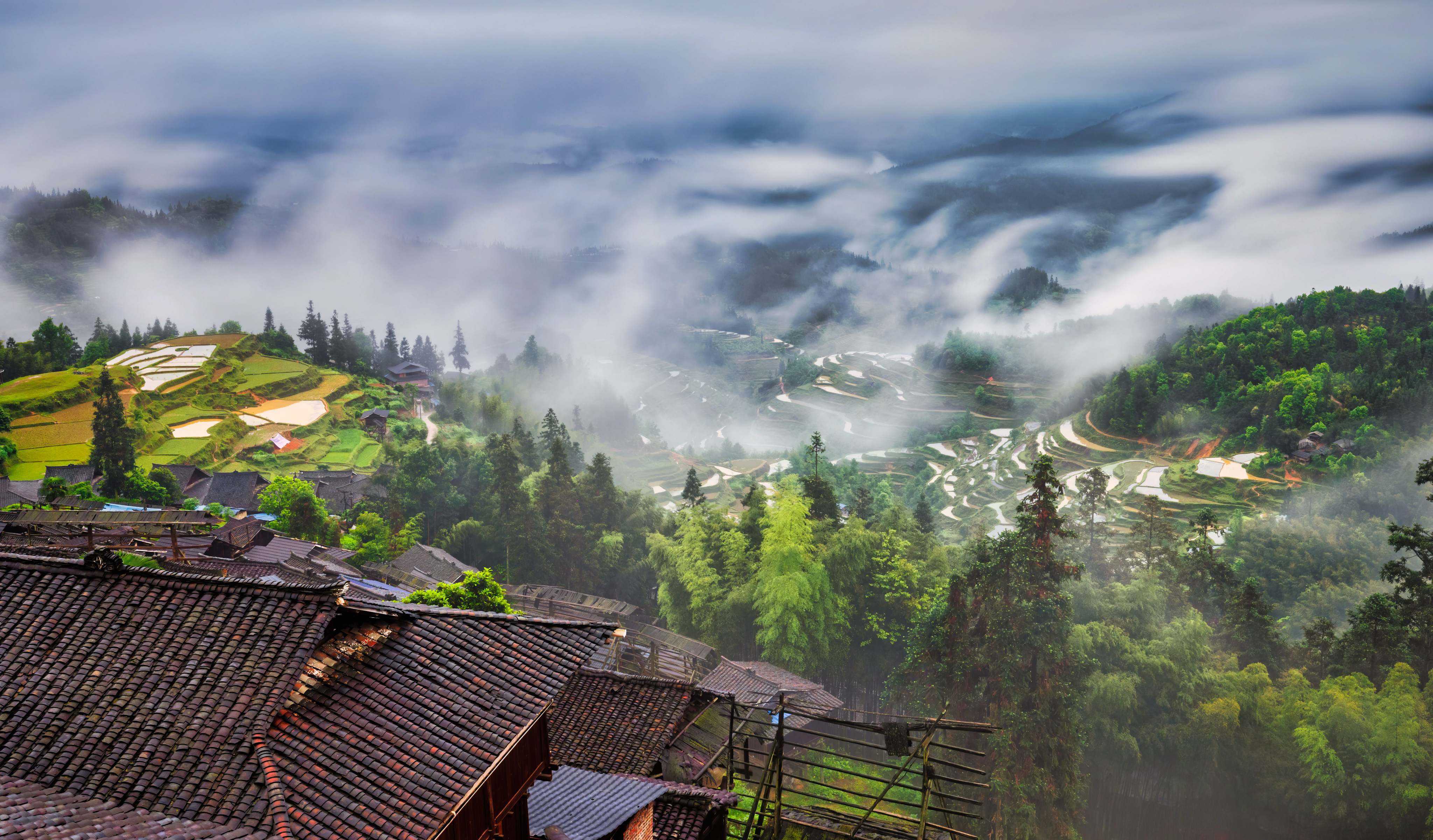 바샤 먀오족 마을은 구이저우의 오래된 먀오족 마을로, 먀오족 문화의 '살아있는 화석'이자 '생태 박물관'으로 불립니다. 월량산(月亮山) 깊은 곳에 위치해 있으며, 충장(从江) 현성에서 약 7.5km 떨어져 있고, 해발 480~660m에 다섯 개의 자연 촌락이 자리잡고 있습니다. 총 면적은 18.28㎢입니다. 산기슭에 자리 잡은 마을에는 조각루(吊脚楼)가 조화롭게 배치되어 고목, 곡물 창고 등과 함께 원형적 조화를 만듭니다. 먀오족 마을에는 독특한 풍습이 있는데, 바샤 남자들은 '후군(户棍)' 머리 모양(정수리에 머리를 길러 상투를 만들고 주위를 삭발)을 하고, 허리가 높은 검은색 상의와 일자 바지를 입으며, 항상 총과 허리칼을 차고 있어 '중국에서 합법적으로 총기를 보유하는 마지막 민족'으로 불립니다.