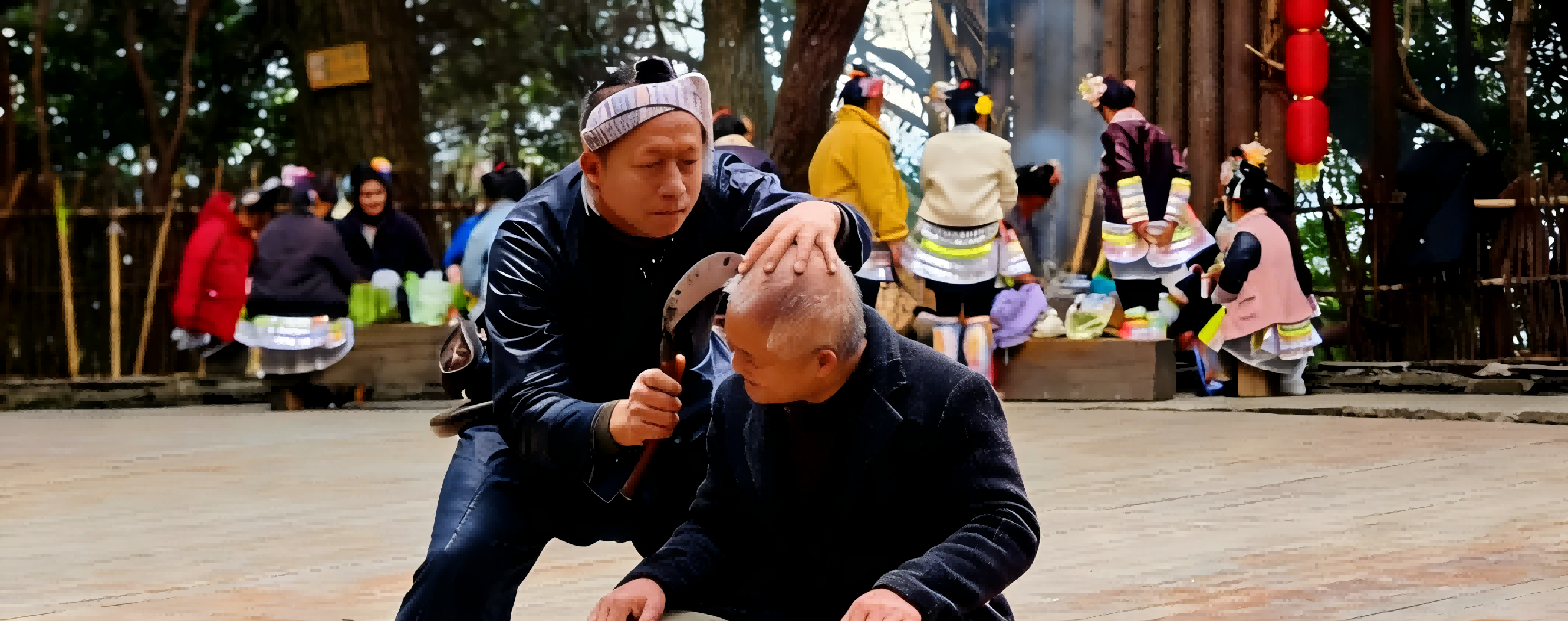 바샤 남성들이 낫으로 머리 깎는 전통을 직접 볼 수 있습니다. 소년에서 "총잡이"로서의 사명을 이어가는 통과의례입니다.