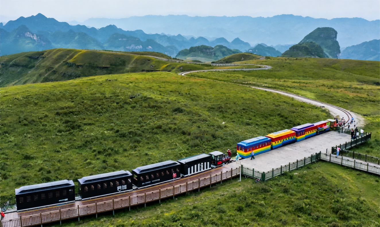 미니기차를 타고 약 1.5시간 동안 여유롭게 초원을 가로지르며 초원 천갱(草原天坑), 만봉림(万峰林) 등 명소를 편안하게 감상합니다.