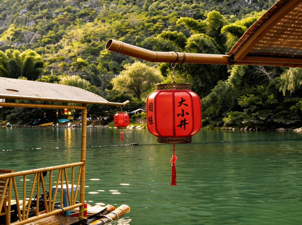 따징허(大井河)에서 대나무 뗏목을 타고 "배는 푸른 물결 위를 가르고, 사람은 그림 속을 걷는다"는 시구의 한 장면을 경험해 보세요.