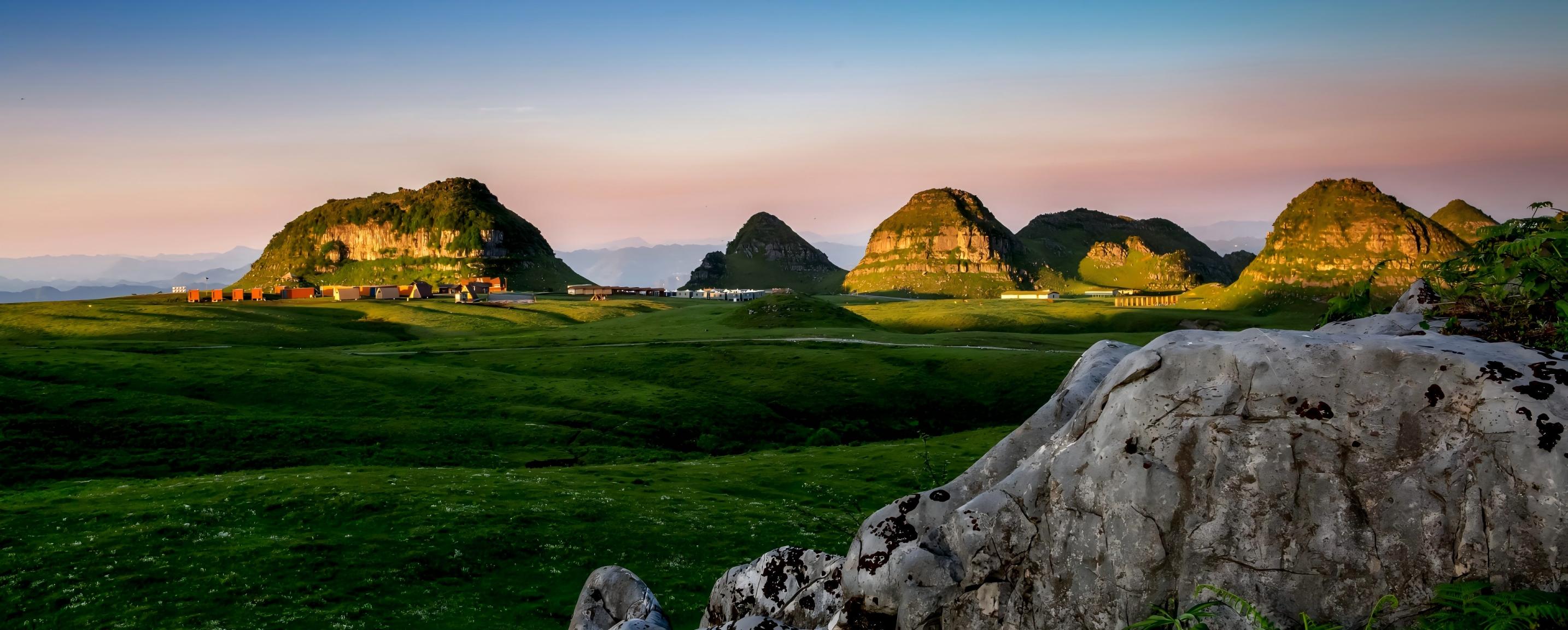 대나무 뗏목에 몸을 싣고 산 그림자와 하늘빛이 어우러진 화랑으로 들어갑니다 신비로운 동굴과 폭포가 대지 깊은 곳의 이야기를 들려주고 부이족 옛 마을의 밥 짓는 연기가 느긋하고 평온한 시간으로 이끕니다