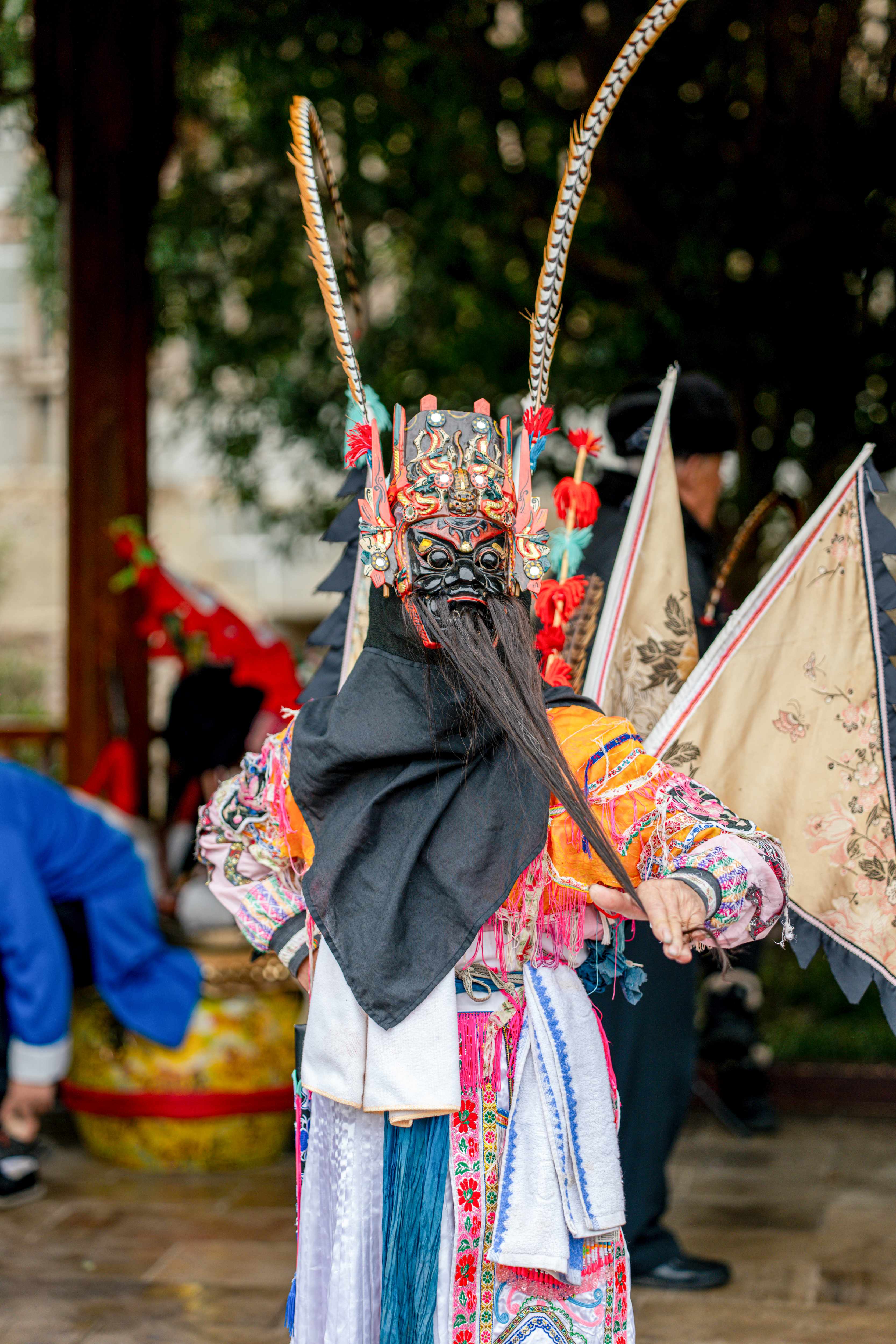 거칠고 호방한 툰바오 지역 전통 가면극을 관람하세요. 배우들은 정교한 목각 가면을 쓰고 《삼국지》, 《양가장》 등의 역사 이야기를 힘차게 풀어냅니다.
