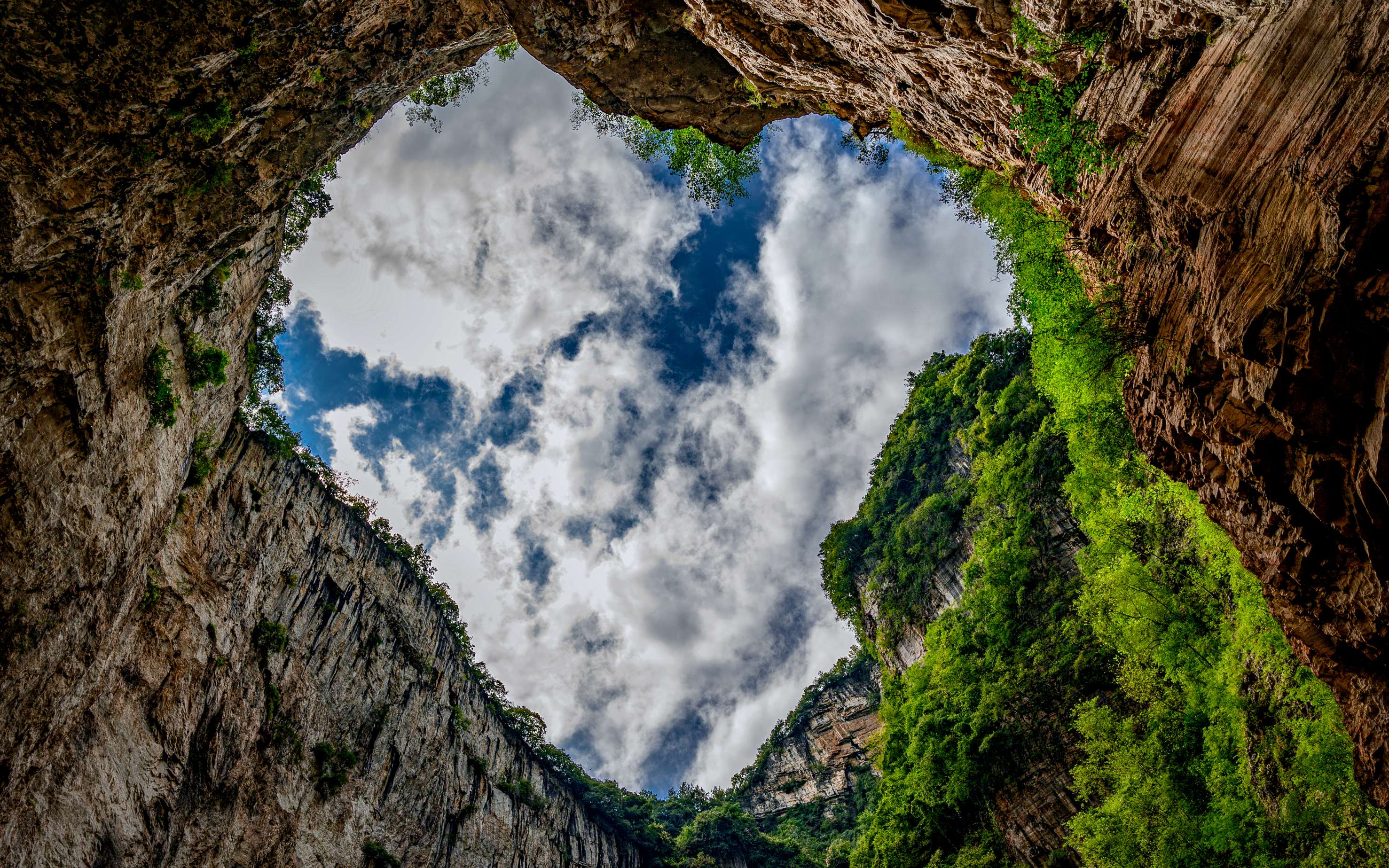 지진 대협곡은 ‘중국 용동(溶洞)의 왕’ 지진동과 인접해 있으며, 지진동 세계 지질공원의 핵심 경관대에 속해 ‘지상과 지하가 일체화된’ 카르스트 기이한 경관 체계를 이루고 있습니다. 총 길이 3km의 이 협곡은 험준한 “일선삼조(一线三槽)” 지형으로 유명하며, 제한된 공간에 협곡, 천창, 천공, 암하 및 9개의 연속된 천연교 군집이 밀집해 있어 국제 지형학자 윌리엄스가 “세계 일류의 카르스트 경관”이라고 극찬한 바 있다.