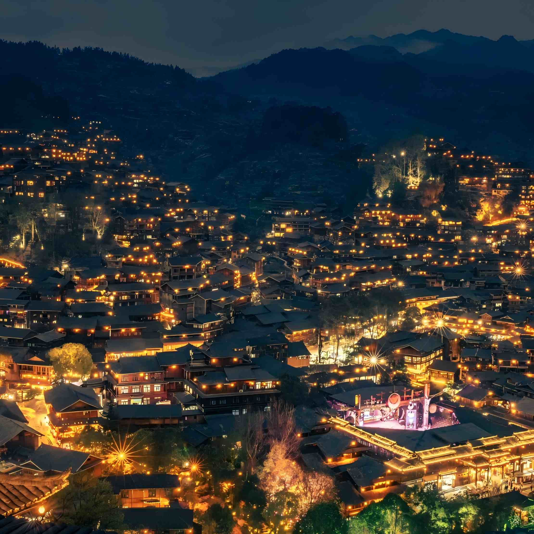 전망대(观景台)먀오족 마을의 전경을 감상하기에 최적의 장소로, 밤이 되면 마을 전체가 흩뿌려진 별처럼 반짝이는 조명이마치 천상의 세계에 들어온 듯 환상적인 야경을 연출합니다.