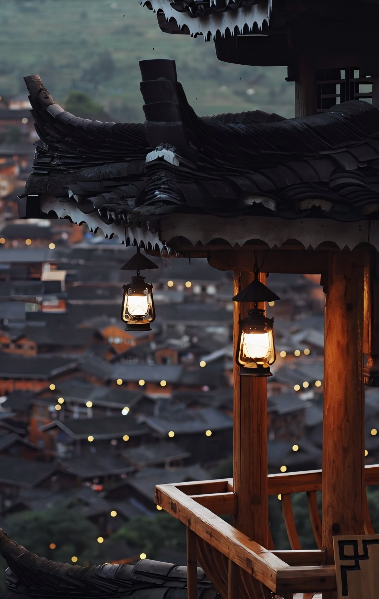 "산기슭에서 구름 끝까지 이어진 다락집들, 저녁 안개 속 천 가구의 등불이 하나둘 켜지니 마치 별들이 하늘에서 떨어진 듯하다. 나는 등불을 들고 돌길을 걸으며 바람에 실려 오는 고대의 노래 소리를 듣는다."