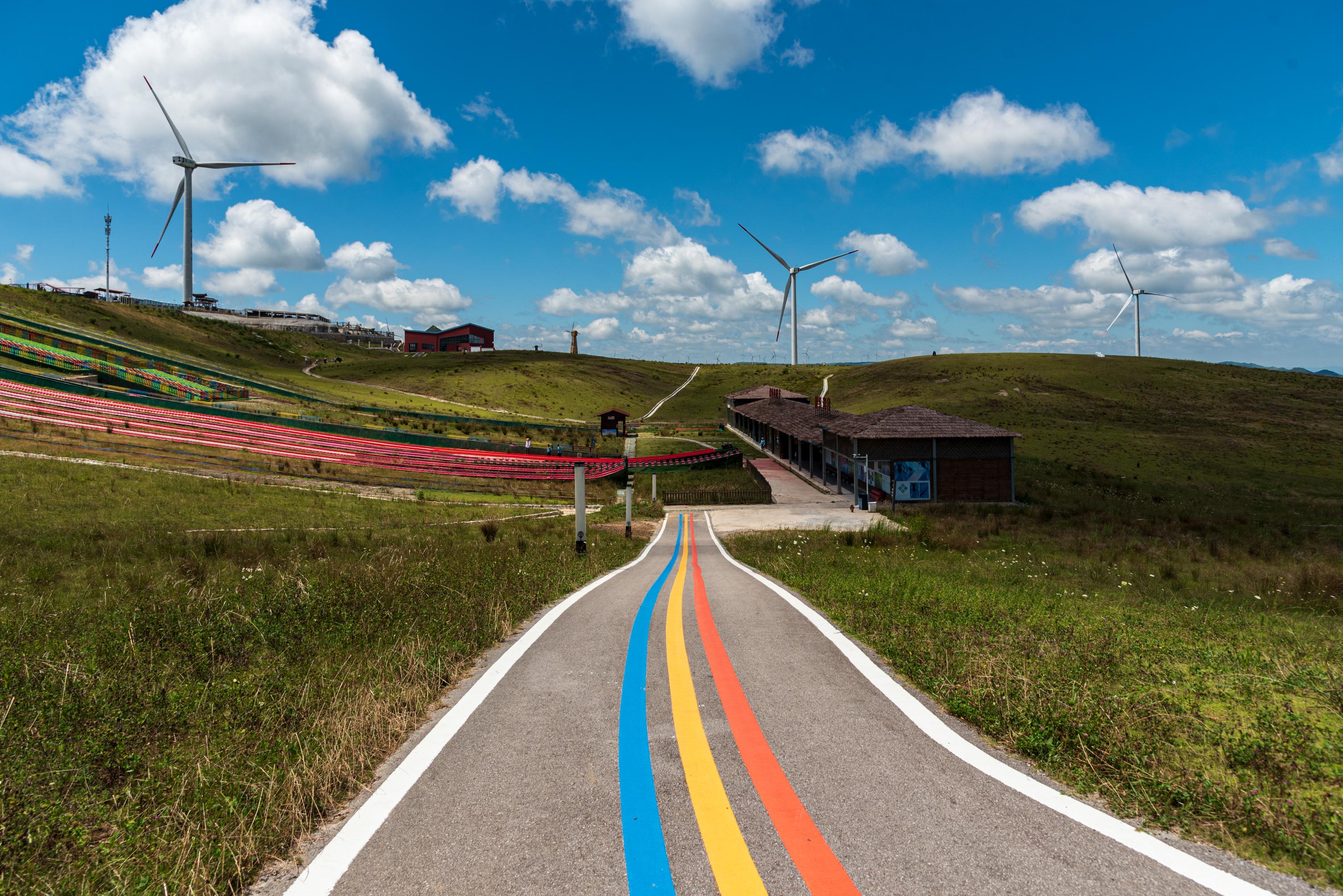 탐험은 환상적인 케이블카 여행을 통해 시작할 수 있습니다. 다채로운 케이블카를 타고 1343미터에 달하는 여정 동안 천천히 상승하면, 발아래로는 깊은 협곡이 펼쳐지고 옆으로는 안개가 자욱하게 감싸며 마치 구름 속으로 들어가는 듯한 느낌을 줍니다. 정상에 도착하면, 푸른 초원, 여유롭게 돌아가는 하얀 풍차 군집, 그리고 수백 무에 달하는 겔상화(格桑花)와 백진달래(白杜鵑)가 어우러진 희귀한 꽃밭이 여러분을 맞이합니다. 심장이 쿵쾅거리는 3D 유리 다리 위에서, 혹은 상징적인 ‘하늘의 문’ 전망대에서, 광활한 초원과 멀리 있는 용리 현(龍里縣) 마을을 내려다보며 산과 강의 아름다운 경치를 한눈에 담을 수 있습니다.