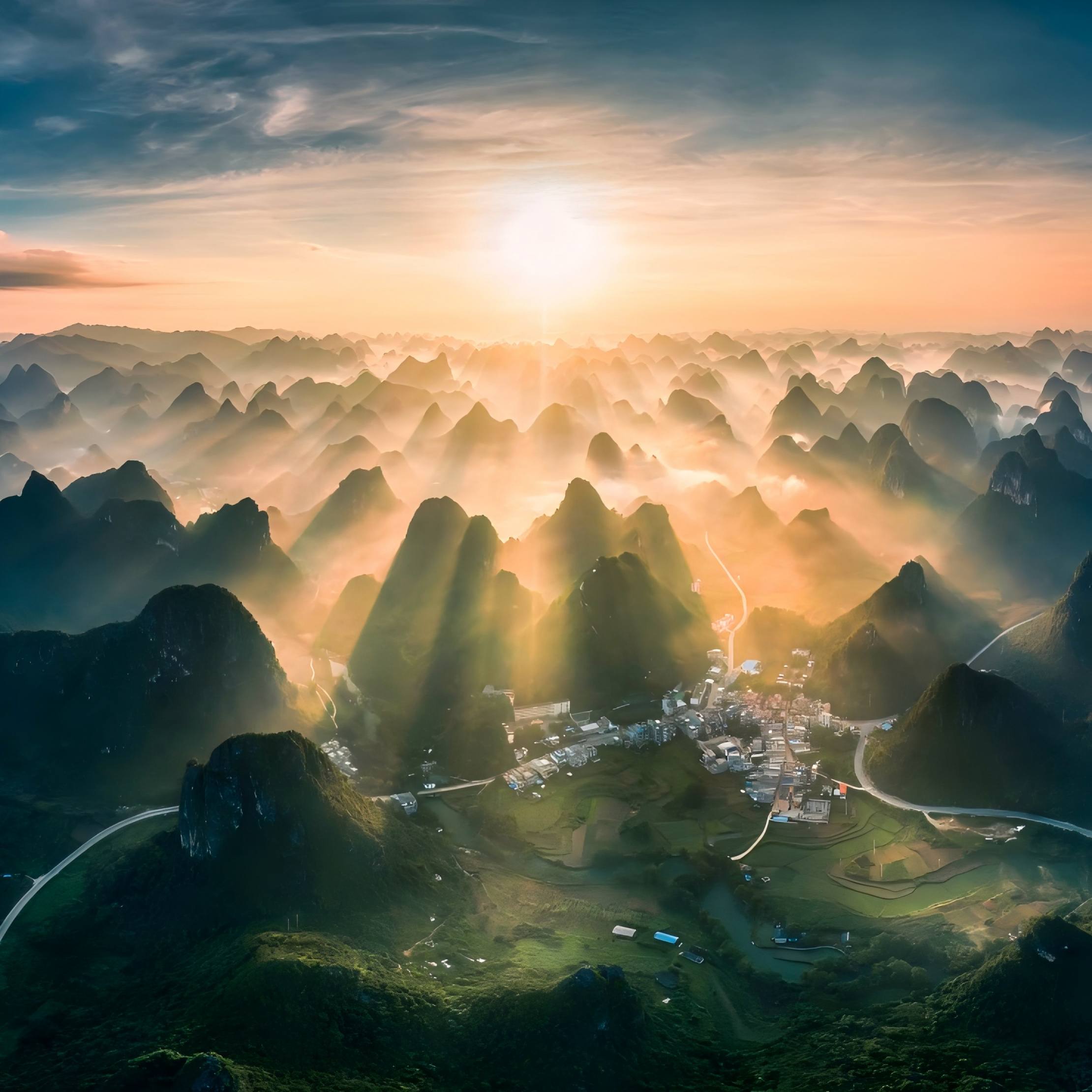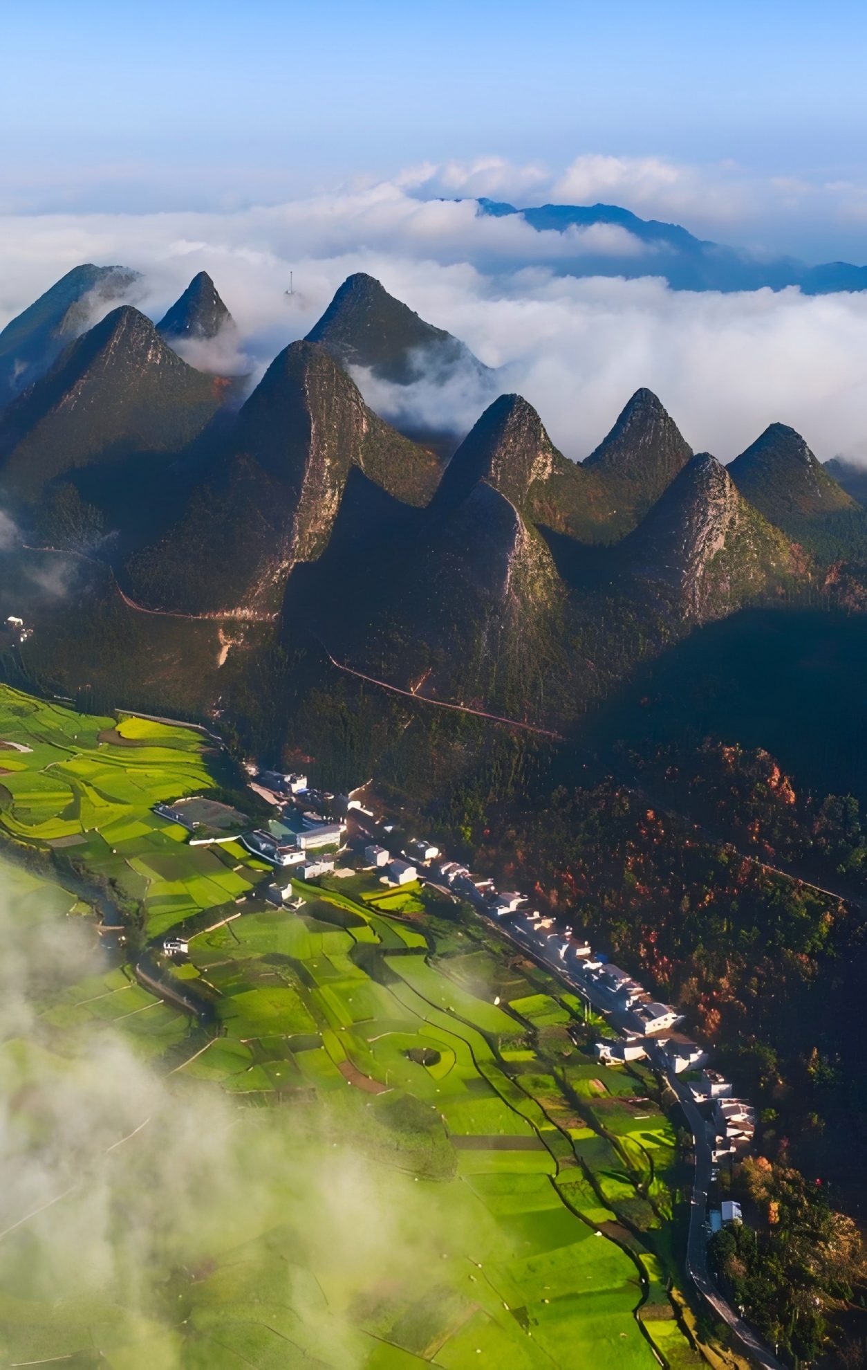 국가 5A급 관광 풍경구로, 약 2만 개에 달하는 기암봉과 푸른 산봉우리로 이루어져 있으며, 총 면적은 2,000㎢에 달해 '산의 바다'라 불립니다. 명나라의 유명한 여행가 서하객(徐霞客)은 "세상에 산봉우리는 많지만, 봉우리가 숲을 이룬 곳은 여기뿐이구나"라고 극찬했습니다. 중국 《내셔널 지오그래픽》의 '중국에서 가장 아름다운 5대 봉림(峰林)' 중 하나로 선정되기도 했습니다.나후이허(纳灰河)의 맑은 물결과 짙푸른 봉림이 어우러진 풍경 속에서 봉림 사이로 난 길을 따라 자전거를 타고 달려보세요. 산들바람이 스치는 소리와 산과 물 사이의 시원하고 상쾌한 기운을 온몸으로 느낄 수 있습니다.