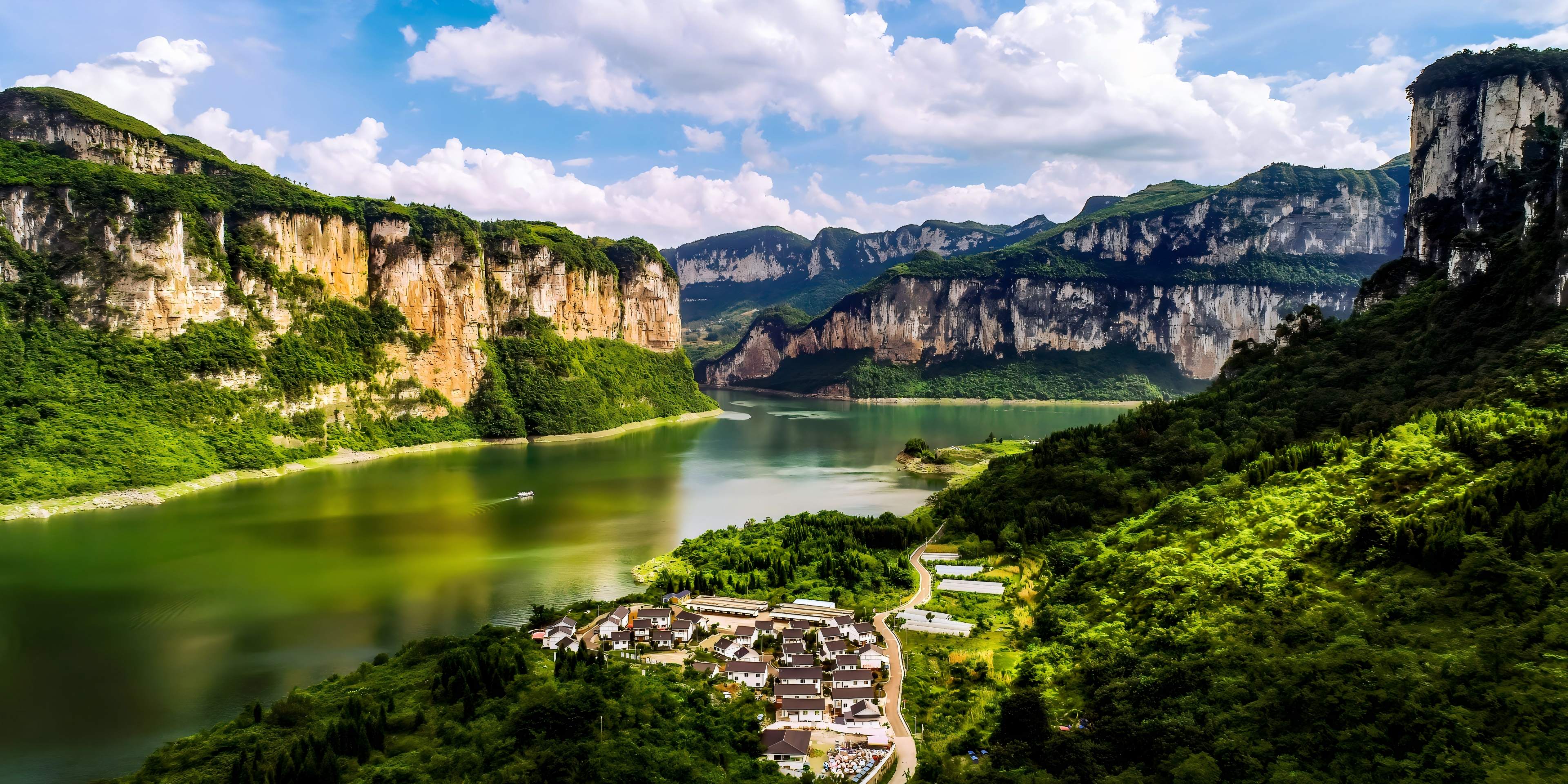 우장 백리 화랑은 양쯔강 상류 지류인 우장 강 상류에 위치한 협곡 풍경, 높은 협곡의 평호(平湖)와 인문 유적지가 조화를 이룬 산수 화랑의 전형으로, 주로 “우장원 백리 화랑”과 “우장 백리 화랑·유연 정수 구간”이라는 두 개의 핵심 관광 구역으로 구성되어 있습니다. 전자는 구이저우성 비제시 첸시시에 위치하며, 동풍 수력발전소 건설로 형성된 카르스트 협곡 호수 경관으로 “산은 삼협을 닮았으나 물은 삼협을 능가하고, 물은 리강을 닮았으나 산은 리강을 능가한다”는 명성을 지녔다; 후자는 2025년 정식 개통 예정인 충칭시 유양현과 구이저우성 연허현을 연결하는 성간 프리미엄 항로로, 함께 “천리 우장, 백리 화랑”이라는 장엄한 그림을 이룬다.