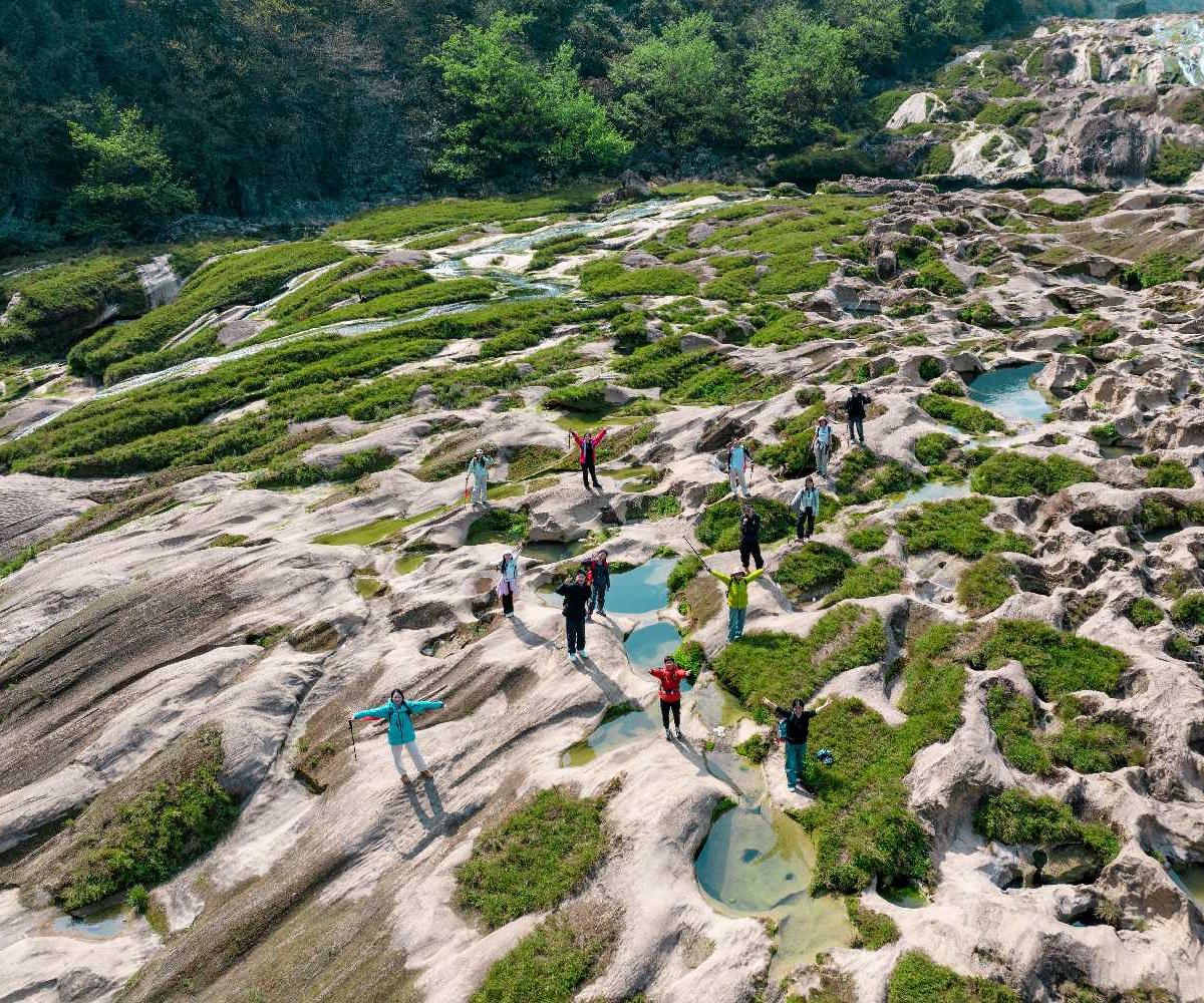 이곳을 트레킹하면 다양한 형태의 포트홀(빙동굴)을 발견할 수 있는데, 복숭아 모양, 호리병 모양, 매화 모양, 해바라기씨 모양 등 다양합니다. 가장 큰 것은 직경이 15미터, 깊이가 약 10미터에 달하며, 가장 작은 것은 단추 크기에 불과합니다. 이 포트홀들은 회백색 암석 하상에 박혀 있으며, 맑은 물과 어우러져 마치 투명하게 빛나는 진주 목걸이처럼 아름다운 풍경을 자아냅니다.