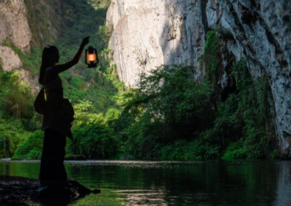 대성지안(大圣之眼)을 촬영할 때 발밑에 주의하여 물에 빠지지 않도록 하세요.